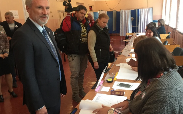 Лидер "РОДИНЫ" пришел голосовать на избирательном участке №1120, который расположен в воронежской школе №2. В ней он проучился 10 лет.