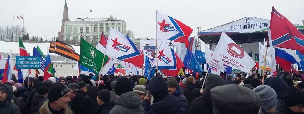 Сегодня 4 ноября в Казани прошёл митинг-концерт "Мы вместе", посвященный Дню народного единства. В нем приняли участие 7,5тыс. человек - представители  более 170 национальностей, проживающих в Татарстане. На Кремлевской набережной напротив сквера Дворца земледельцев выступили лучшие творческие коллективы. Региональное отделение партии Родина в Республике Татарстан совместно с Союзом Десантников приняли активное участие в митинге. Этот праздник имеет особое значение в патриотическом воспитании молодёжи, поскольку связан с историческими событиями и подвигом наших предков, которые сплотились во имя свободы и независимости Родины. Единство тогда и сейчас помогает нашему народу преодолевать трудности.