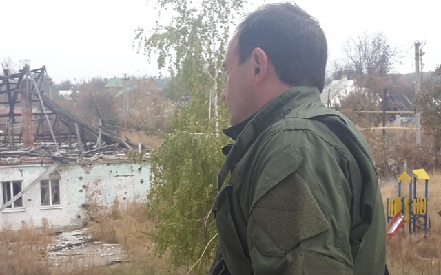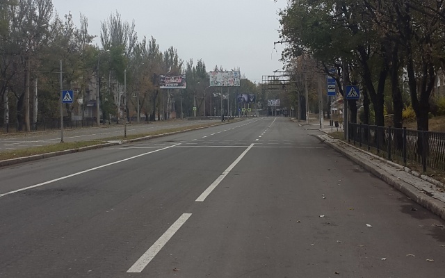 Дорога на фронт начинается сразу из центра Донецка. Просто нужно ехать по прямой, по одной из главных улиц и вскоре прохожих и автомобилей встречаешь всё меньше, затем их нет вообще. Улица целиком состоит из разрушенных магазинов, заправок, салонов. Окон в жилых высотках либо нет совсем, либо они заколочены наглухо фанерой. Людей нет. Есть только блокпост, военная техника и вооружённые люди в камуфляже. Они здесь для того, чтобы сдержать очередную попытку украинских фашистов уничтожить сердце ДНР, Донецк. Никакие переговоры, этапы перемирия и разоружения не меняют ситуации. Война была и есть.