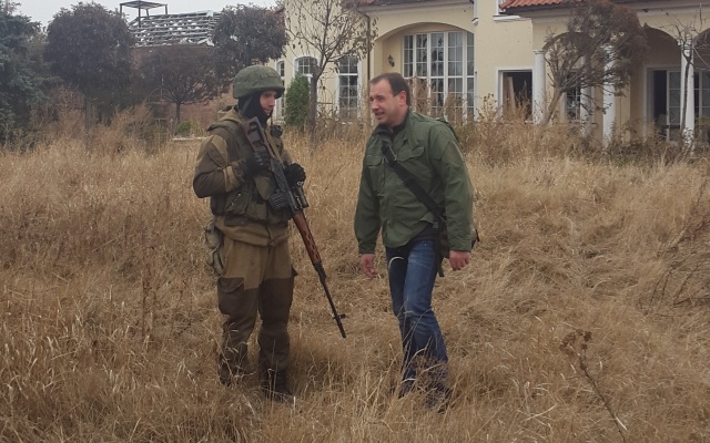Следуем дальше. В качестве проводников берем ребят-ополченцев, несущих в Спартаке круглосуточную боевую вахту. Подходим к вилле "Каппуччино", резиденции бывшего губернатора Донецкой области. Сейчас сюда можно зайти беспрепятственно, чтобы полюбоваться "остатками былой роскоши". Осколки великолепной люстры перемешаны с кусками дубовых панелей, мраморной крошкой и осколками снарядов, по разбитым лестничным пролетам гуляет сквозняк, треплющий шторы на высоких окнах без стекол. Впрочем, наш интерес к жилищу губернатора "эпохи украинской демократии" на Донбассе отнюдь не культурный или туристический. Любопытство вызвано лишь тем, что до украинских позиций здесь рукой подать, а, значит, их можно и сфотографировать сквозь амбразуру в стене.