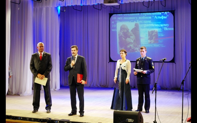 Принимая поздравления, директор "ВОИНА" Алексей Вепринцев напомнил о подвиге сотрудника подразделения "А" ФСБ России Героя РФ Александра Перова, погибшего при освобождении в 2004 году детей в Беслане. Он поблагодарил отца Героя Валентина Перова, прибывшего на торжества, за воспитание сына и за его продолжающуюся деятельность по патриотическому воспитанию молодежи.