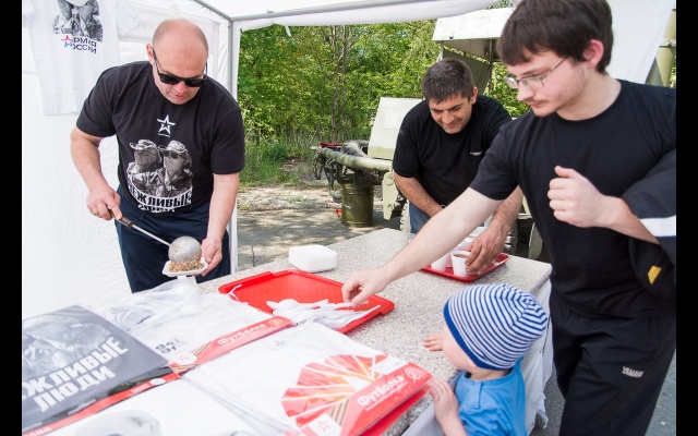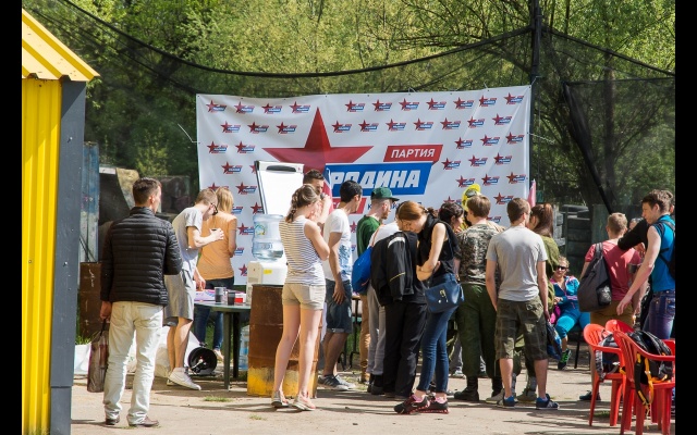 Команды по пять человек сначала боролись за флаг партии "РОДИНА". Команда-победитель стала обладателем кубка "Защитник Родины".