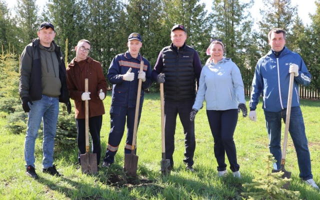 Глава Чебоксарского округа, председатель Чувашской "РОДИНЫ" Владимир Михайлов совместно с молодежью высадили более 30 деревьев: зеленые и голубые ели, туи.
